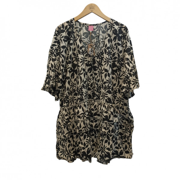 SALIMA DRESS FLOWER BEIGE/BLACK