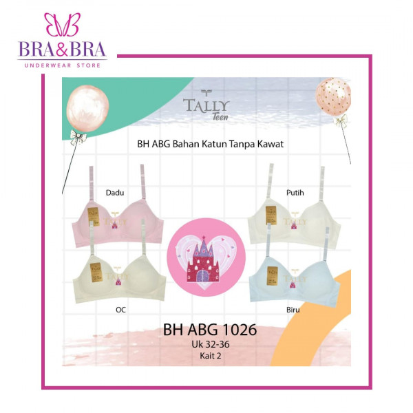 Brand Tally Bra Young 10256 Bahan cotton sehingga nyaman dipakai karena menyerap keringat. Bra dengan busa tipis tanpa kawat (busa tdk bisa dilepas) Dilengkapi dgn kait 2 di bagian belakang untuk pengaturan lingkar dada