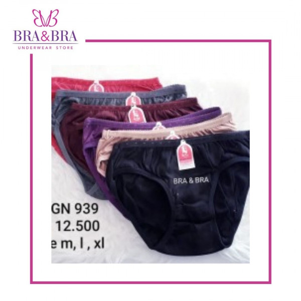 Celana dalam GN 939 Ukuran yang tersedia : S, M Bahan : Katun Harga Tertera Untuk 1pc L : Lebar cd relax 27 cm (lingkar pinggang 54cm)