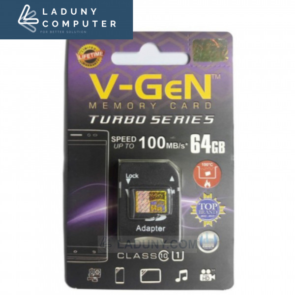 Micro SD V-Gen 64gb class10 turbo plus adaptor 100Mbps