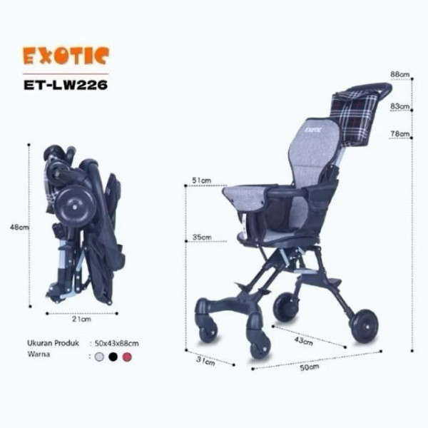 EXOTIC MAGIC STROLLER LW-226 roda 4,Magic Stroller EXOTIC ET-LW226 memiliki desain baru dan fitur yang menarik. kereta bayi ini dirancang untuk memudahkan anda saat melakukan perjalanan dengan pesawat terbang bersama sang bua
