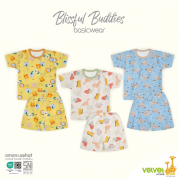 Baju santai harian yang nyaman dengan model baju lengan pendek kancing pundak dan celana pendek, untuk nyamannya saat si buah hati bersantai bersama keluarga. Hadir dalam kombinasi warna dan motif yang lucu dan seru