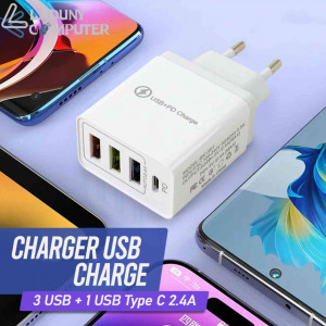Kepala Charger 3 Port USB + 1 Port Typ...